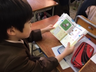 水曜日の朝は、読書タイムです。登校して連絡帳などを書き終わったら、自分の好きな本を読んでいます。