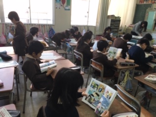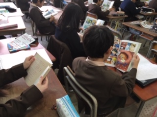 学級文庫から選んだり、家から持ってきた本を読んでいます。静かな時間が流れています。