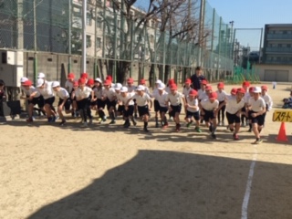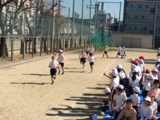 3年生がスタート!応援も頑張っています。3年生は、4分間走ります。