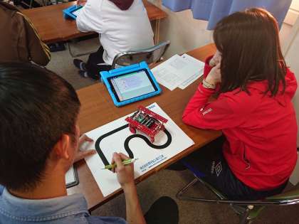 プログラミング学習は新しい学習指導要領で実施することが明記されています。何をねらい、どんな学習内容になるのかまだまだ勉強していかねばなりません。先生たちが子どもになって、プログラムキットを実際に扱って研修を深めました。
