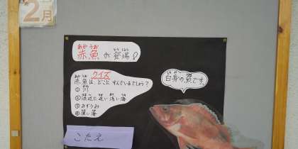 赤魚はさっぱりとした味つけで骨も少なく食べやすかったようで、子どもたちに好評でした。クイズの答えは、4番です。深海魚特有の大きな目玉が特徴です。