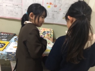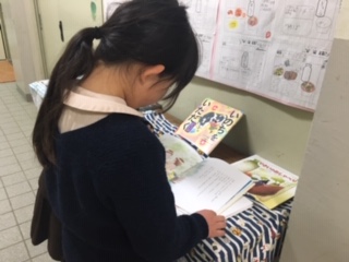 栄養教諭のF先生が、食べ物・食育に関する本を置いてくれています。休み時間に、手にとって楽しそうに読んでいます。