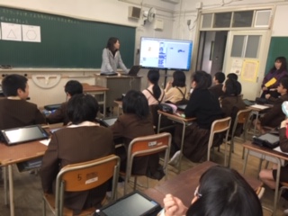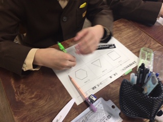 「正多角形を書こう」の学習で、プログラミング学習を取り入れて学びました。初めにコンパスや分度器を使って正方形、正三角形、正六角形を書きました。「もっと速く、正確に書く方法を考えよう」という課題に対して、タブレットでやってみようと、挑戦しました。