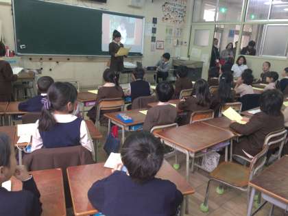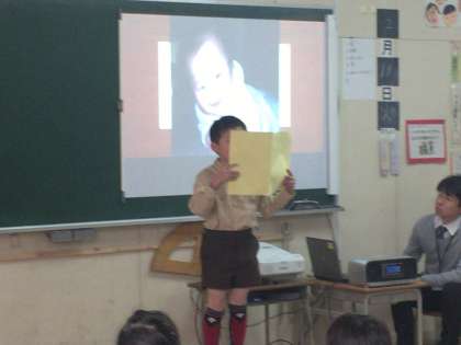 生活科で学習したことを発表しました。自分のこれまでの成長をふりかえり、作文で書いた内容をみんなの前で読みました。赤ちゃんの時の姿をプロジェクターで映しながら発表していると、2年生と言えどもどれだけ成長したかよくわかります。一人一人が発表する姿を見て感動せずにはいられませんでした。