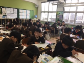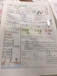 グループで、一つの県を選び、特長を調べています。わかったことを新聞にまとめて、発表会をする予定です。調べていくうちに親しみがわき、行ってみたいなと思うようになった子もいたようです。