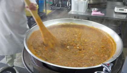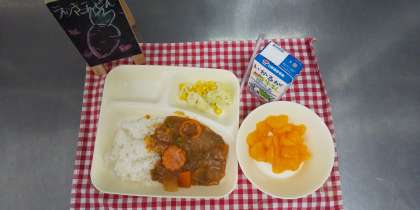 ハヤシライスは、給食室でルウを小麦粉から作ります。子どもたちにも大人気の献立です。ラッキー人参も用意してくれました。
