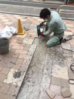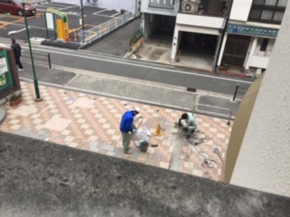 玄関のタイルの一部が破損して、小さな段差ができていました。子ども達が怪我をしないように三角コーンを立てていました。管理作業員さんが、タイルを削り、倉庫に残っていた僅かばかりのタイルを貼ってくれる予定です。