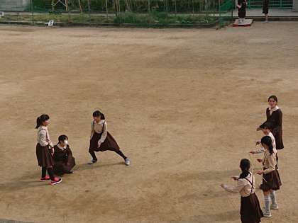 6年生が運動場で楽しそうに遊んでいました。職員室に向かって「先生ー!写真撮ってー!」と声をかけられたので思わずパチリ!