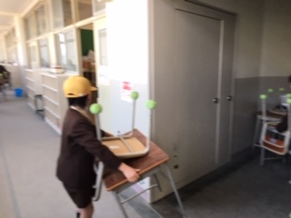 教室の移動に伴い、机や椅子を移しました。こちらの作業もよく働きました。さすがですね! ありがとう!!