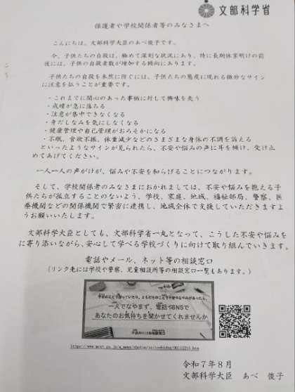給食後 13:30ごろ下校の予定です。※給食の用意(エプロン等)も、お願いします。