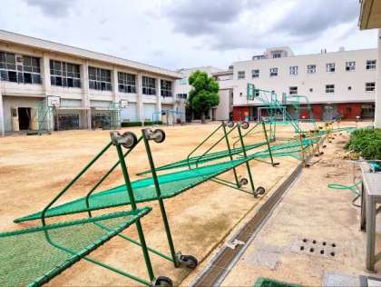学校は、防球ネットを倒したり、教室のカーテンをかけたりして対応しております。