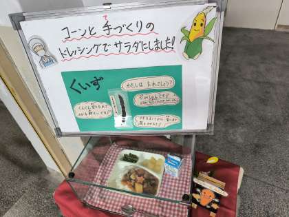 今日は、ハヤシライス、グリーンアスパラガスとコーンのサラダ、洋なし(缶詰)、牛乳でした。ハヤシライスは子どもたちに大人気のメニューです。