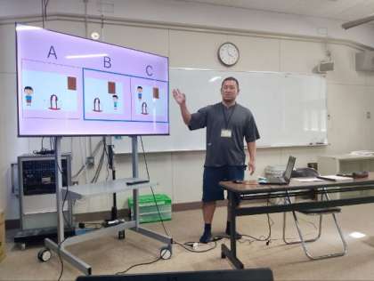 本校の特別支援担当者から「読むこと・書くこと」について児童がつまづきやすいポイントを具体的に提示し、みんなで解決策を話し合いました。