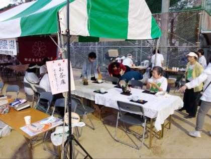生け花体験でお世話になった更生保護女性会がお茶のブースを出展したり