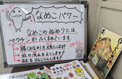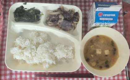 今日は、牛肉の甘辛焼き、なめこのみそ汁、ほうれんそうのおひたし、ご飯、牛乳でした。