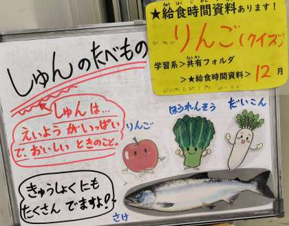 今日は、さけのマリネ、肉だんごと押麦のスープ、りんご、黒糖パン、いちごジャム、牛乳でした。