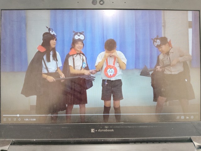 歯磨きについて、保健委員会の子どもたちが中心になって考えたものを見る時間になりました。
