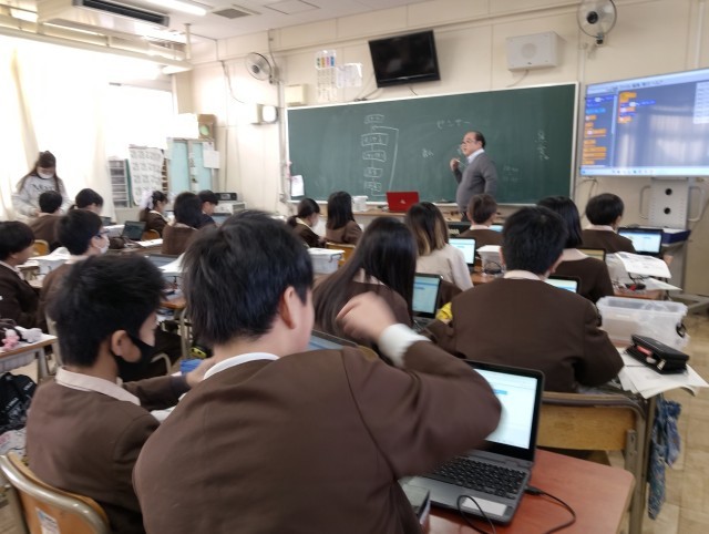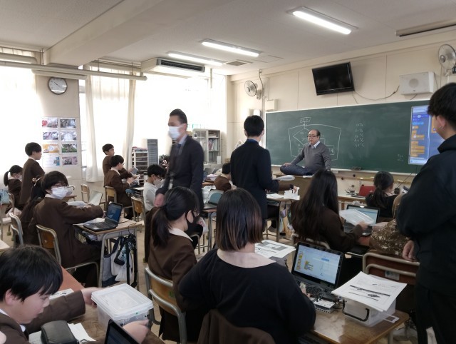 大学から先生にきていただき、ロボットに指示を送る学習をしました。