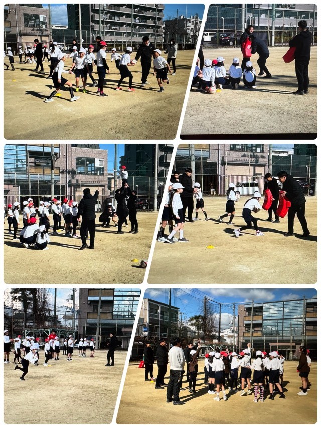 レッドハリケーンズの選手の皆さんにきていただき、4年生がラグビー体験をしました。