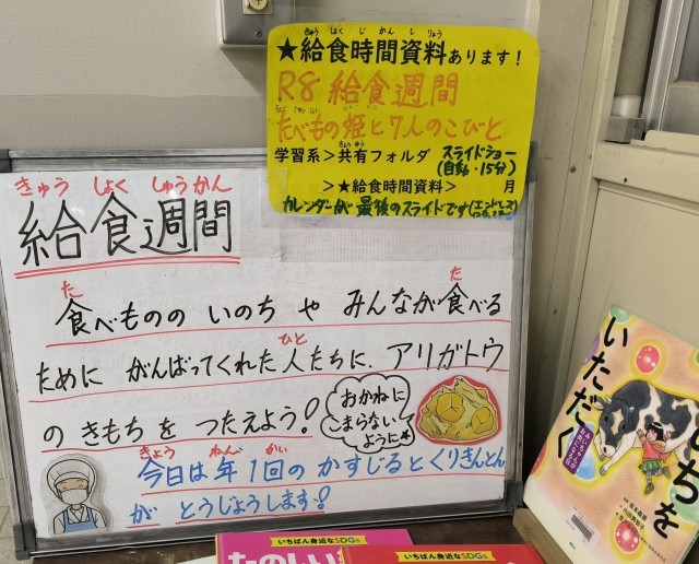 おせち料理の「くりきんとん」や昔からの和食「かす汁」を、鶏肉の塩こうじ焼きと組み合わせた米飯献立でした。とても温まるかす汁は子ども達にも食べやすい味付けにしています。