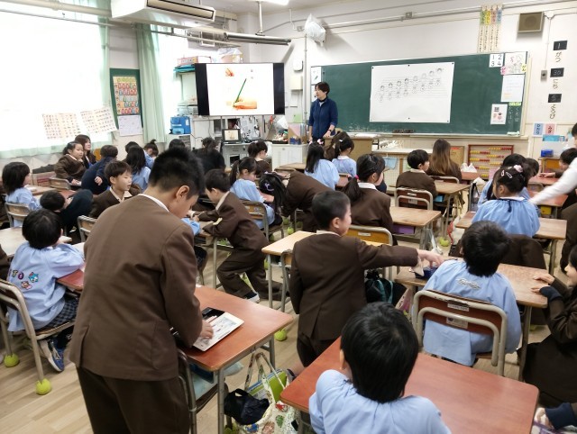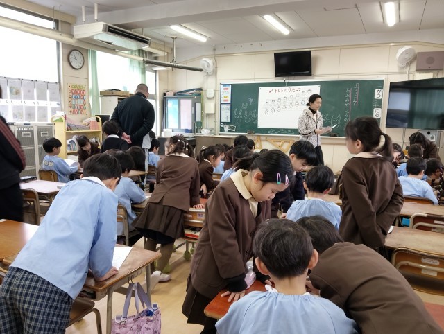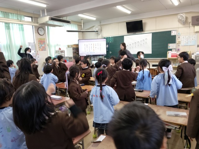 今の1年生の教室に入り、音楽や鉛筆の持ち方などを教えてもらいました!