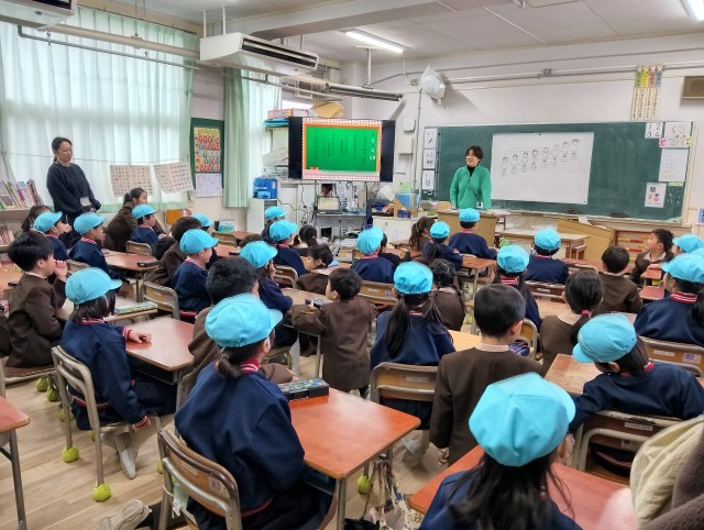 1年生は、お兄さんお姉さんとして、歌の披露をしたり鉛筆の持ち方を教えたりしていました。