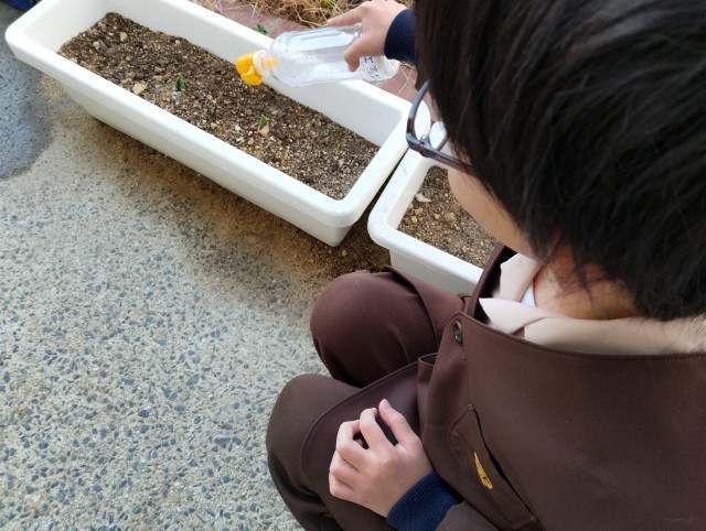 1年生が水やりをしていました。