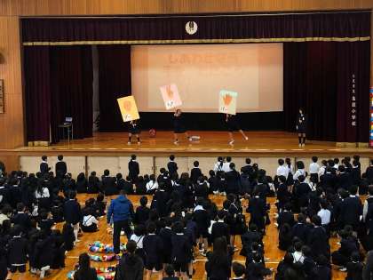 4月16日(火)、1年生を迎える会がありました。新1年生は小学校生活も7日目となり、お兄さんお姉さんと初の対面です。