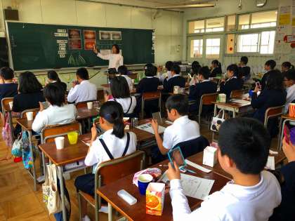 本日、歯科衛生士の方による6年生対象の「歯磨き指導」がありました。まず、歯周病が生活習慣病であることから、どのような生活をすれば歯周病になりにくいのかを教えていただきました。その中では、おやつの頻度、歯磨きの回数、好き嫌いの多さ等、6つの要素が取り上げられ、六角形のレーダーチャートで、自分が歯周病になりやすいかどうかを知ることができました。