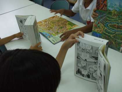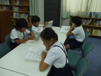 お昼休みは、高学年図書室が開放されています。低学年から高学年まで思い思いの本を静かに読んでいます。貸し出しは、火曜日だけになっています。だから、読みたい本がある人は、毎回図書館に足を運んでいます。「ドラえもん」のアニメも置かれています。最近、図書館開放に行っていない人。新しい発見があるかも知れませんよ。