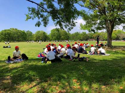 午前中は、天候が心配される中、学校を出発し大泉緑地に向かいました。結構長い時間を電車に揺られ、新金岡の駅から歩きました。