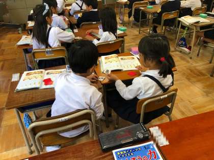 10連休明けの子どもたちの様子を見に行こうと、1年生教室に入ってみました。教室では、学習規律が身についてきた1年生が算数の学習をしていました。