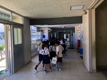 廊下に出てみると、2年生が明日実施予定の「学校たんけん」で、1年生を連れて学校中を回ることを想定して、リハーサルを行っていました。
