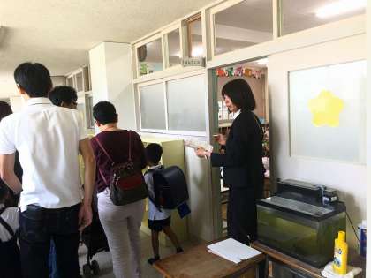 各教室に保護者の方々が迎えに来て、名簿でチェックをしながら子どもたちを託しました。