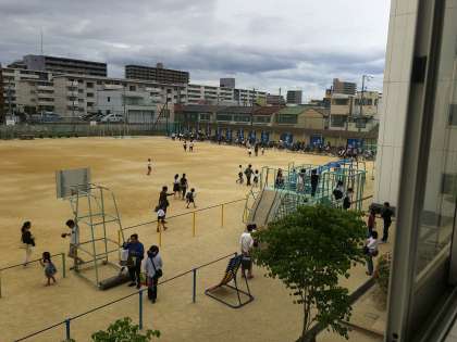 土曜授業の3時間目は、台風接近を想定して、子どもたちを保護者に引き渡す訓練を実施しました。