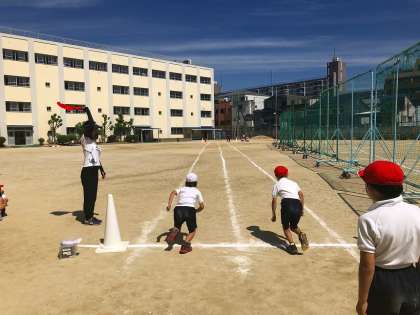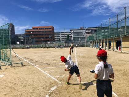 大阪市では重点目標の一つに、「学力・体力の向上」を挙げています。今年度は、本校でも体育を研究教科とし、スポーツ測定についても研修会をもって、少しでも子どもたちがもっている力が発揮できるように努めています。