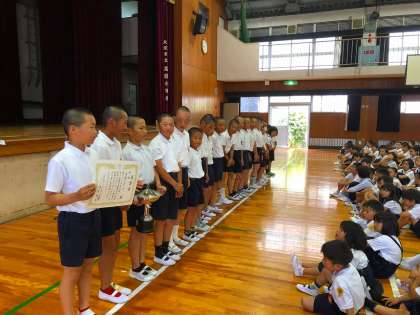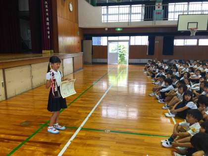 その後、学校長よりソフトボールと空手で素晴らしい成績をあげた子たちの表彰がありました。