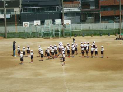 2年生の集団演技は「グッド ラッキー ☆」です。この日は、主に隊形と動きの練習が中心でした。
