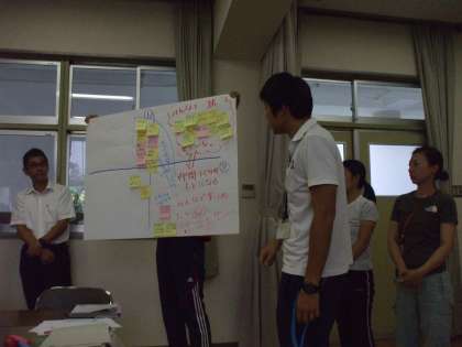 研究授業が終わって、放課後、多目的室で研究討議を行いました。教育実習生も参加し、いろいろな意見の交換が行われました。