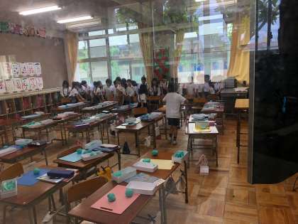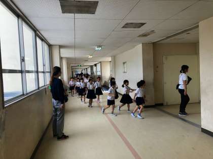 そして、本日10日(月)は、授業中に不審者が校内に入ったことを想定して、各学級で放送を聞きながら対応をしていきました。今日の教職員や子どもたちの様子も、旭警察の防犯課の方に見ていただき、最後に講堂で講評をいただきました。