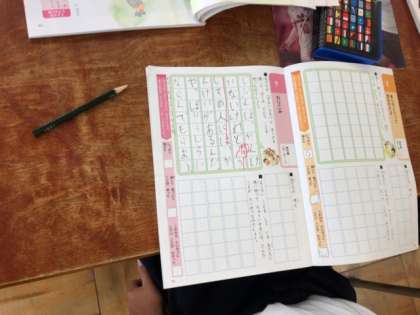 3組は、道徳「わりこみ」をテーマにした学習です。教科となった道徳には教科書とは別に「道徳ノート」があり、みんなしっかりと自分の考えを書き込んでいました。