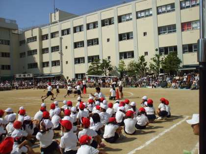 1年生の「ゴールをめざしてRUNRUNRUN」です。小学校の運動会にいよいよデビューです。
