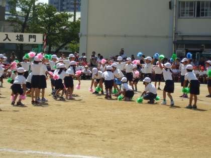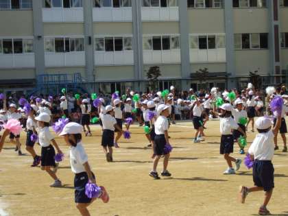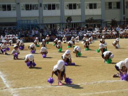 2年生の「グッド ラッキー」です。ポンポンを手に、みんな本当に楽しそうに、跳ねるように踊っていました。