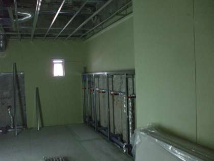 特に2号館で生活をしている1、2、5、6年生には、トイレ工事のため、なにかと迷惑をかけています。工事中のトイレを少しのぞかせてもらい、写真を撮らせてもらいました。便器等は取り付けられていませんが、内装が始まりました。11月中はまだ工事が続きます。まだしばらく、早めのトイレを心がけてください。