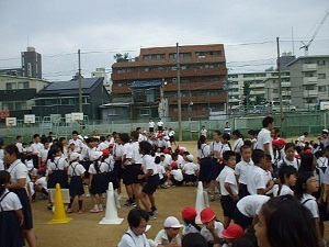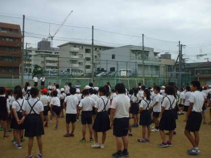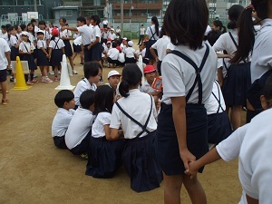 10月2日、木曜日は児童集会の日です。今日は、運動場で行いました。「ことば たす ことば」ゲームでした。2種類の言葉の文字数を足し、合計した文字数のおともだちで、集団を作るゲームです。