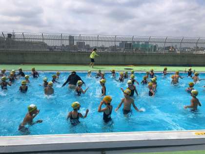 7月23日(火)、前日は悪天候のためプール水泳は中止となりましたが、今日は久しぶりに太陽の光が降り注ぎ、プール水泳にたくさんの子どもたちが参加しました。