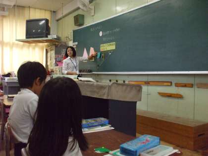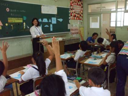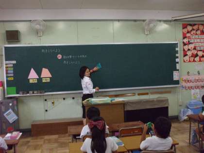 10月3日(金)3時間目、教育実習生の研究授業がありました。紙を折って、直角を作り、問題演習の時に、作った直角を使用して、「直角探し」をしました。身の回りに「直角」が多いことに、子どもたちは、驚いていました。