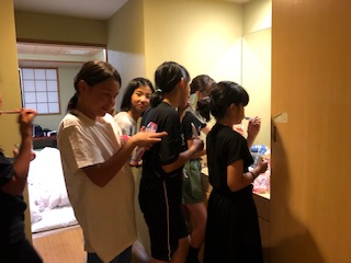 そして、今日一日を振り返ります。布団を敷いたり、歯磨きしたりする部屋もあります。