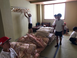 お世話になった部屋の掃除をします。美化係が集められて、合格基準の説明がありました。合格した部屋からアイスクリーム作りができます。