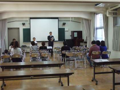 10月8日(水)、9時45分から多目的室にて、学校説明会を実施しました。来年平成27年度入学用の説明会でした。学校選択制となって、2年目を迎えることとなります。この日は、8家族の方に来ていただきました。説明会後、希望される方には、校舎内を見学していただきました。一人でも多くの方に来ていただき、にぎやかな高殿小学校であり続けたいと思います。